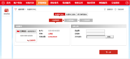 網(wǎng)上銀行超級(jí)網(wǎng)銀->批量跨行快匯