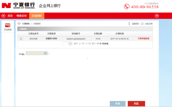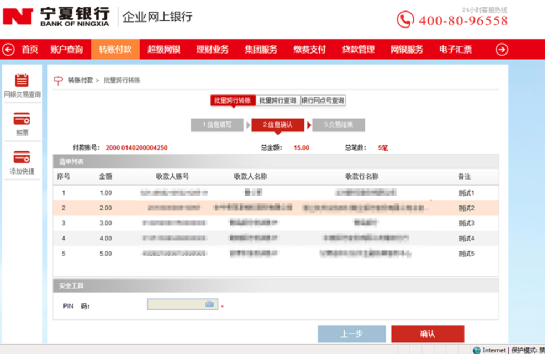 4、進(jìn)入確認(rèn)頁(yè)面,查看收款信息是否正確,無(wú)誤后請(qǐng)輸入證書pin碼,點(diǎn)擊“確認(rèn)”
